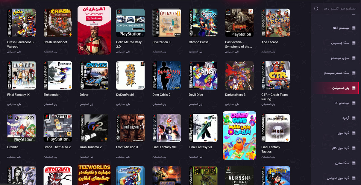 یه وبسایت ایرانی پیدا کردیم واست که بتونی بدون نیاز به تجهیزات فنی و حتی پرداخت هزینه به صورت رایگان یه سری از بازی های کنسول های قدیمی مثل پلیاستیشن ۱، نینتندو DS، سگا جنسیس و گیم بوی رو تجربه کنی و حالش رو ببری.